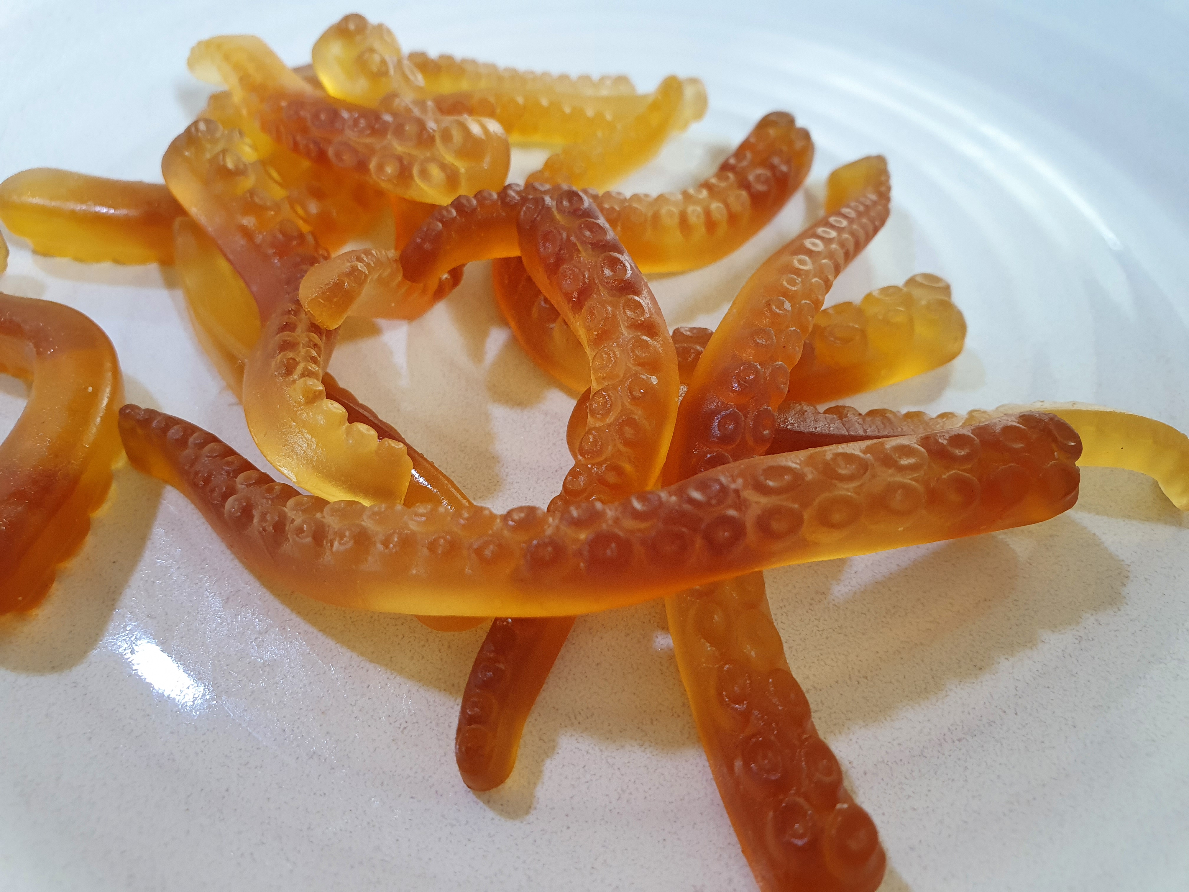 오!! 리얼한 오징어 다리 디테일 보소.ㅎㅎ 빨판이 아주 야무지게 붙어있네요. 킁킁! 냄새를 맡아보니 어디서 많이 맡아본 듯한 스멜... 아하~ 그거 아시죠? 오징어 숏다리라고. 자그마한 봉지에 짧은 오징어 다리 몇개 들어있는 조금은 딱딱한 식감의 오징어다리 간식이요. 그 비슷한 냄새가 나네요? 분명히 젤리인데.ㄷㄷㄷ
