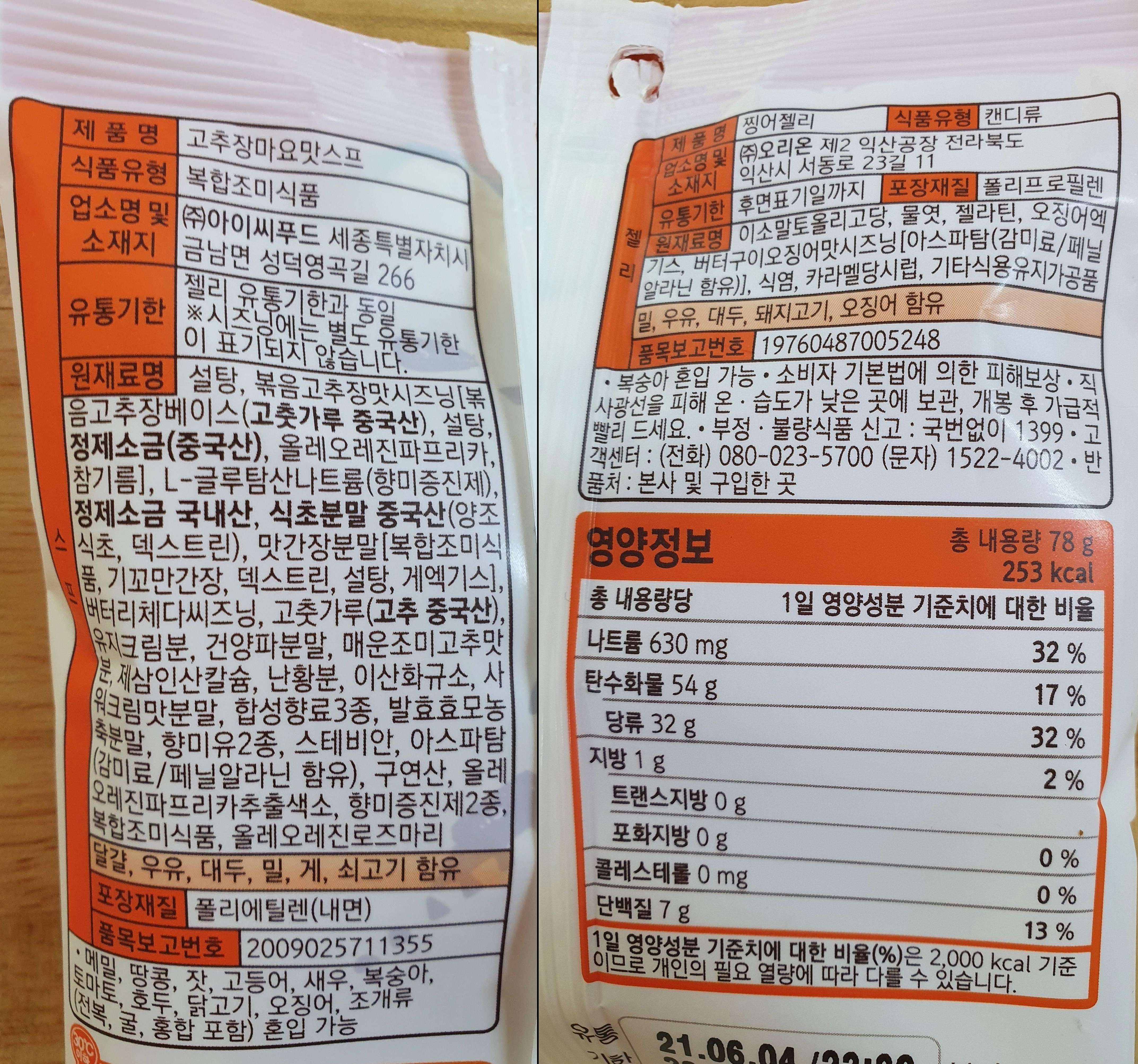 오호!! 이거네요 이거. 라면 스프 같기도 하고 치토스 같기도 한 이 느낌. 찡어 젤리와 아주 딱 맞는 스프였네요. 맥주 생각이 절로 나고.ㅎㅎ